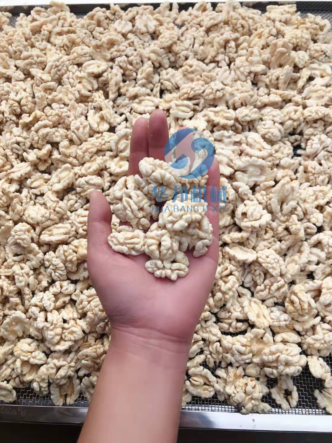 5. 設備底部配有兩個水箱,水箱上部配有物料盤,用來接核桃仁皮衣,保證底部水箱里面的水的干凈度,保證產品的干凈衛生。