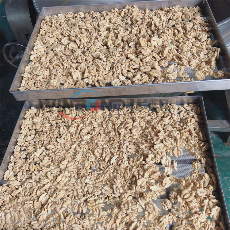 華邦核桃仁去皮的設(shè)備全程1-2人操作由提升機將核桃仁運輸?shù)饺テC內(nèi),為了幫助各大核桃企業(yè)降低人工成本,提升核桃的附加值,本公司研發(fā)了純物理的核桃仁去皮機、核桃仁二次清洗機、烘干機、調(diào)料炒鍋等必要設(shè)備。
