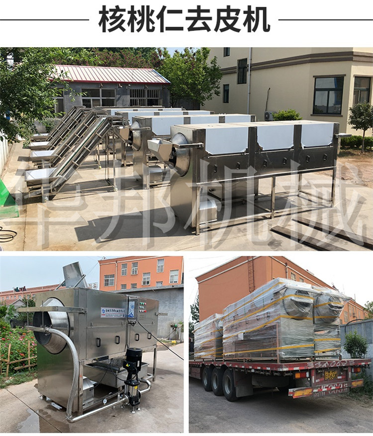 諸城市華邦機械有限公司 新研制的核桃仁去皮清洗機,采用純物理去皮方法,專門針對核桃仁表皮的沖洗,代替了傳統的化學泡制去皮,使產品更安全放心,連續式工作,操作簡單,去皮率高,自動化程度高,節省人工,可配套烘干箱、炒鍋、氣泡清洗機使用。