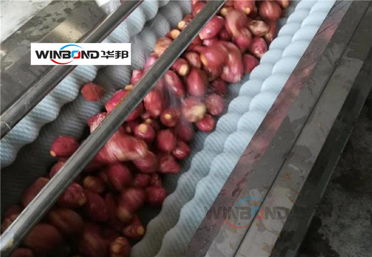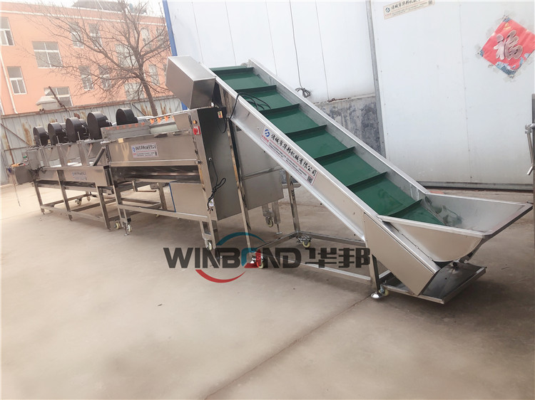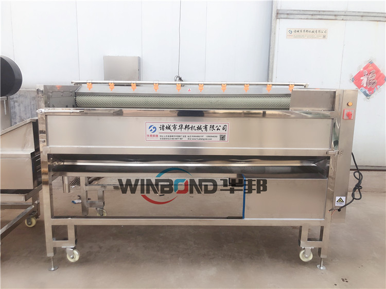 紅薯清洗機 根莖類蔬菜毛輥清洗機各毛輥同向轉動。