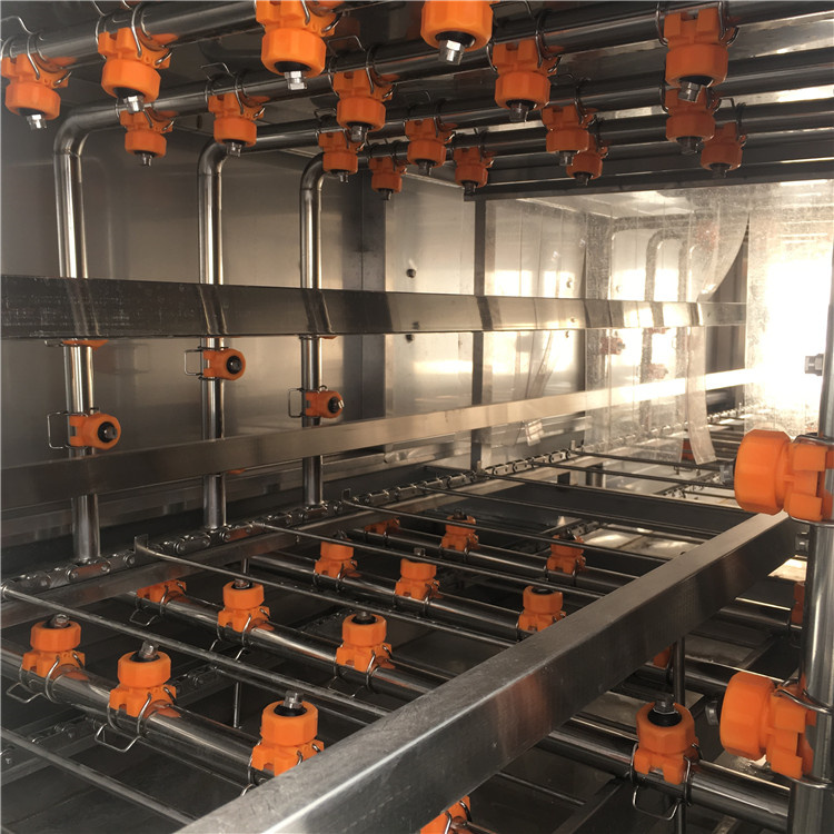 3、噴淋系統(tǒng):清洗噴嘴全覆蓋安裝結(jié)構(gòu),可調(diào)水溫、噴頭可360°球面調(diào)節(jié),無(wú)死角清洗。每一個(gè)噴嘴及管道都可以達(dá)到無(wú)工具拆裝,方便操作工人每班次清理維護(hù)。