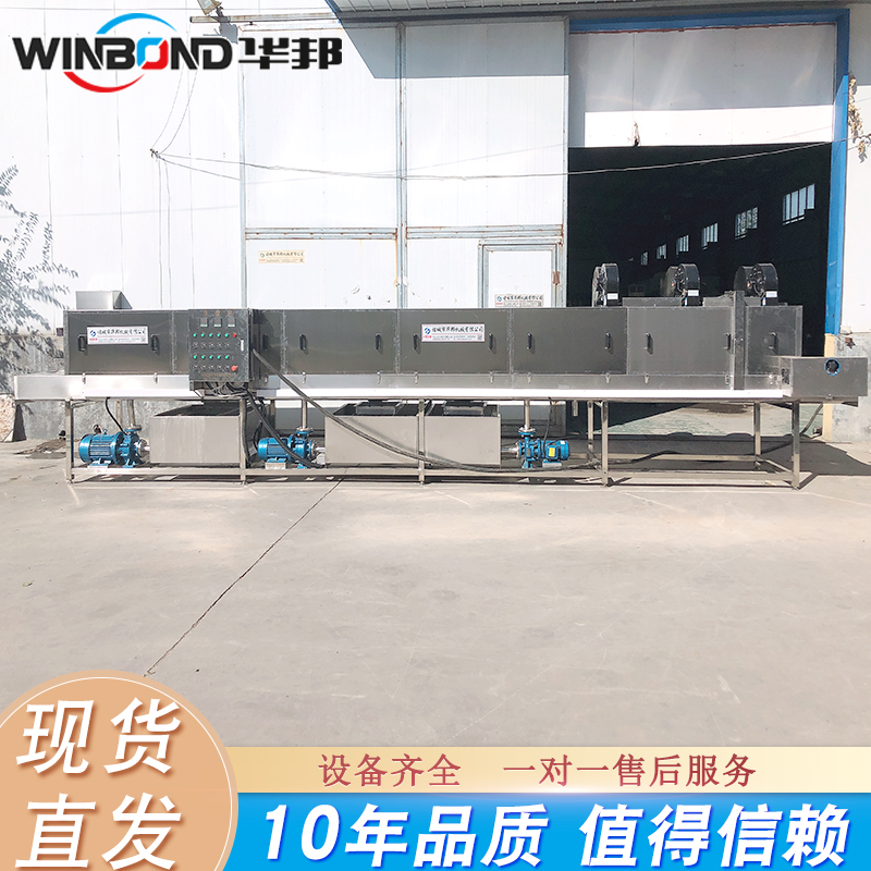 2.設備有熱堿水噴淋段、熱水噴淋段、清水噴淋段幾部分組成,其中消毒水噴淋段及風干段可根據客戶要求定配。
