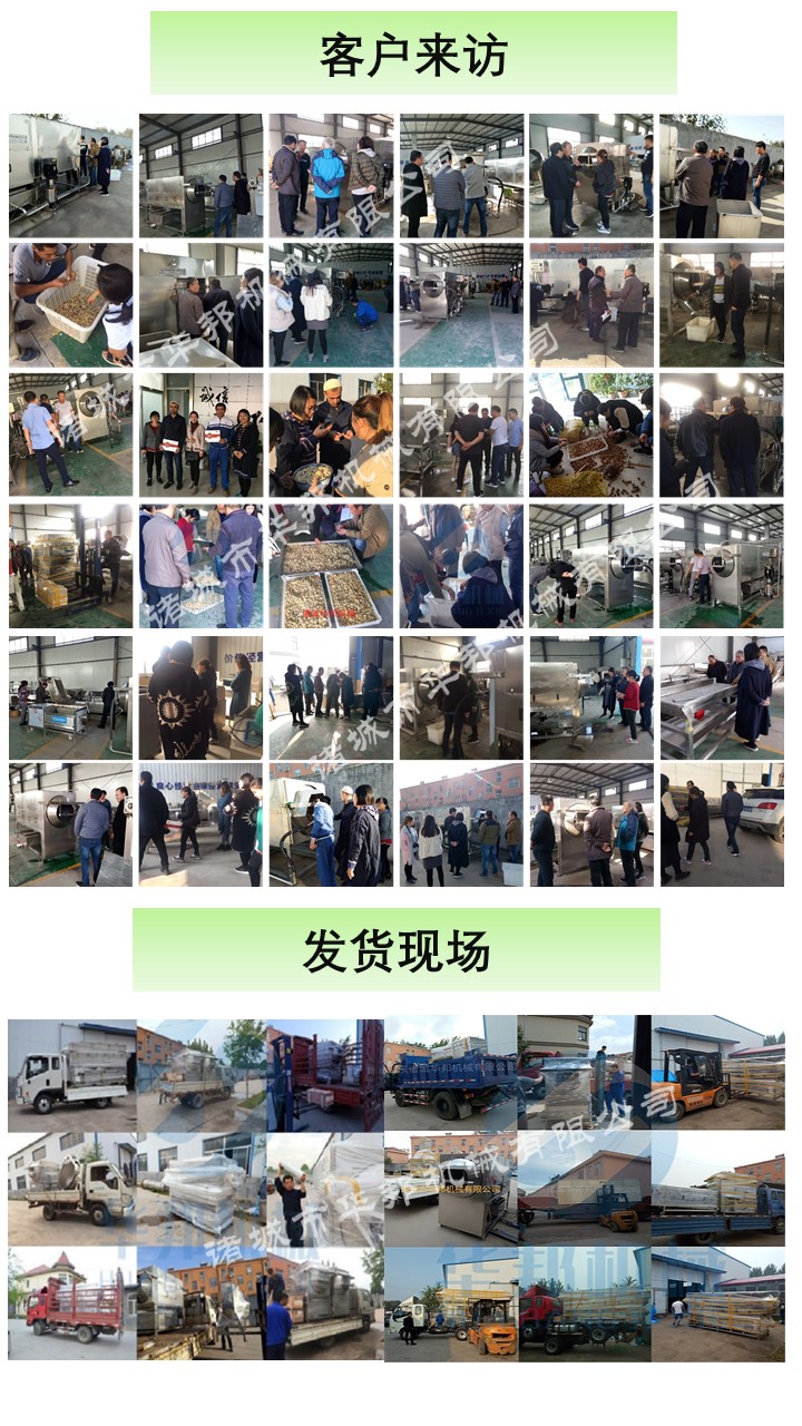 2.滾筒脫皮:采用循環水泵、蒸汽加熱系統可以快速、徹底洗掉核桃仁表面的泥垢、浮皮。清洗后進入清水噴淋區,然后進入振動篩,由振動篩將大部分水珠震動掉后進入風干線或烘干機,風干或烘干完畢后進入下一道工序。生產線可實現變頻調速、自動控溫,且高效節水。