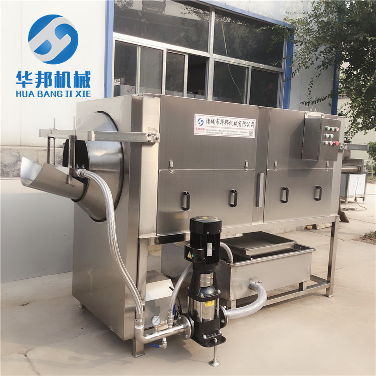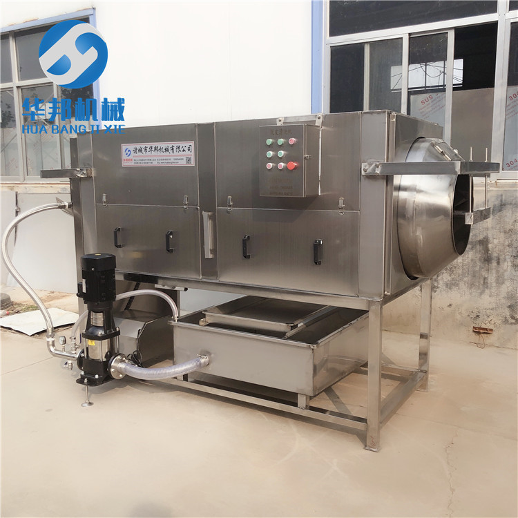 3. 滾筒轉動配合高壓水噴淋,去皮率高達98%!