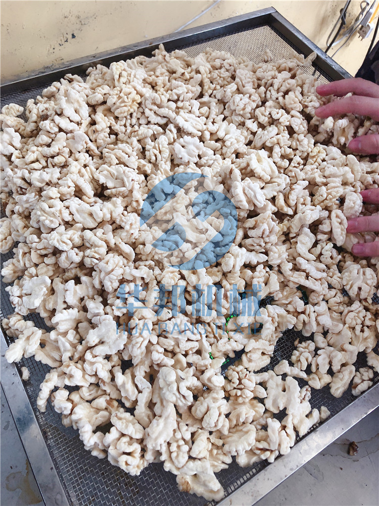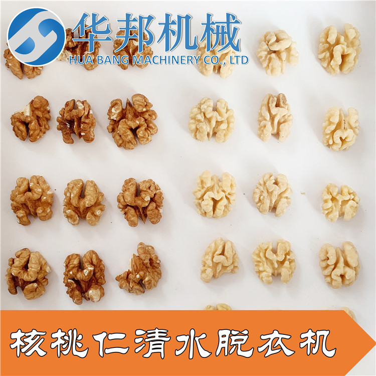 核桃仁去皮機的主要是利用水流沖洗掉核桃仁表面的薄皮衣,因為核桃仁表皮發澀,口感不好,在核桃露、核桃醬、保鮮核桃、琥珀核桃、核桃飲料等產品的加工過程中是一個困擾,公司新研制的核桃仁去皮清洗機,純物理方法,專門針對核桃仁表皮的沖洗,代替了傳統的化學泡制去皮和火堿泡制去皮方法,使產品更安全放心,連續式工作,操作簡單,去皮率高,自動化程度高,節省人工,可配套核桃仁烘干箱使用,免費提供加工工藝。